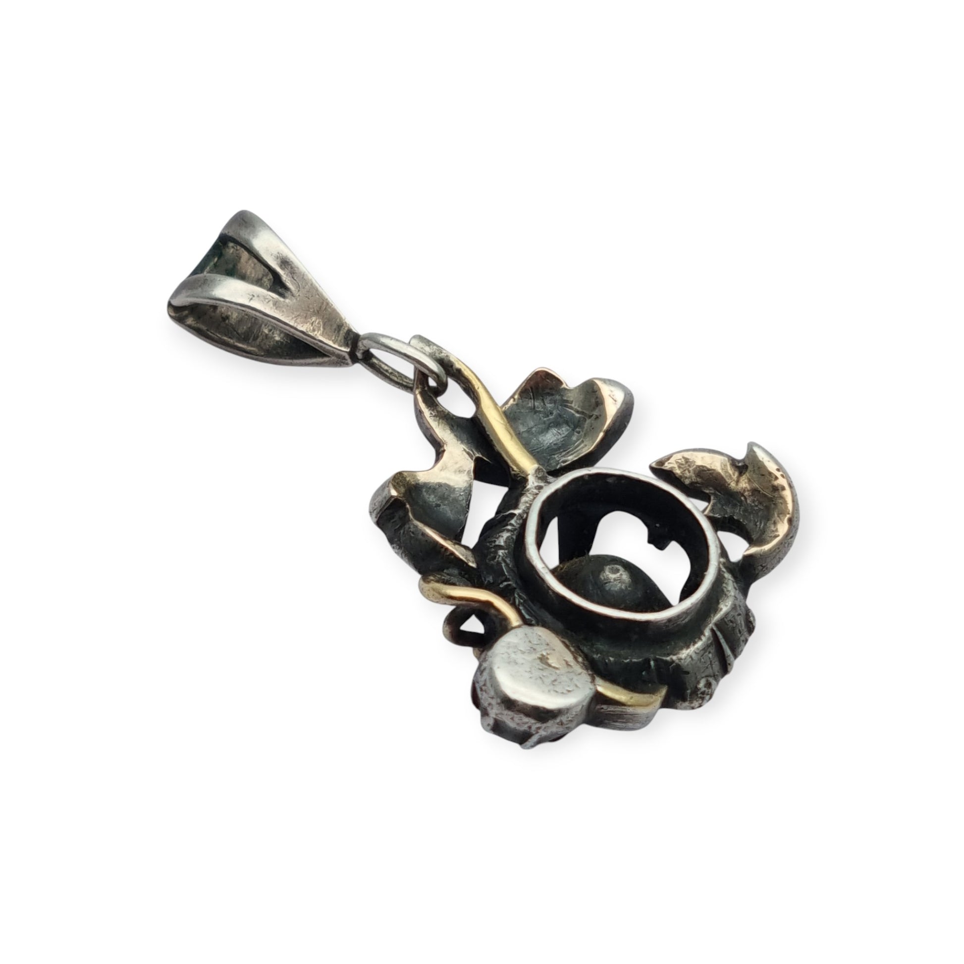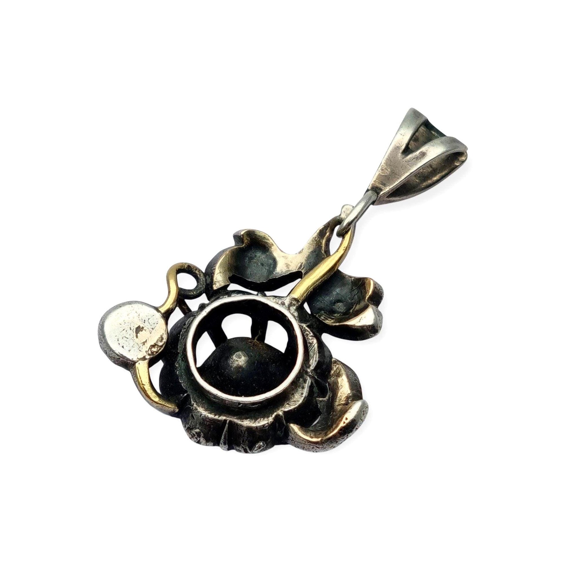 Victorian floral pendant in silver with diamonds and gold details, circa 1890