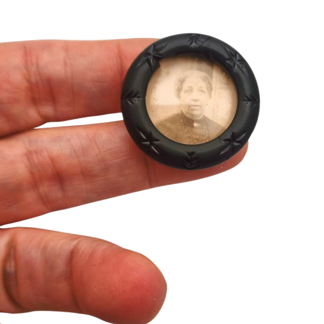 It contains an old photograph inside. This type of sentimental jewelry was very popular in the late 19th and early 20th centuries, especially in the context of memorial and mourning jewelry.