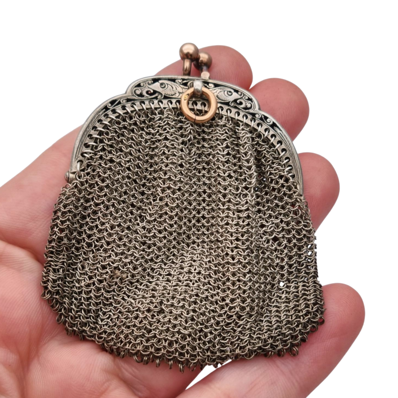 Antique silver and gold mesh coin purse, Art Nouveau circa 1890-1900