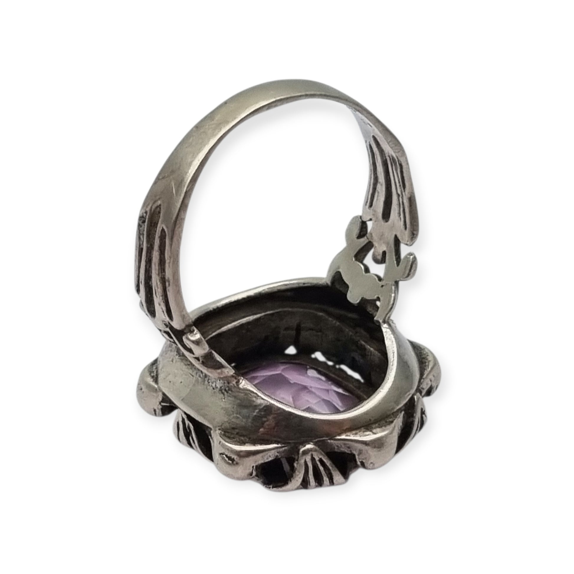 Anillo estilo Art Decó en plata calada con cristal violeta, circa 1960