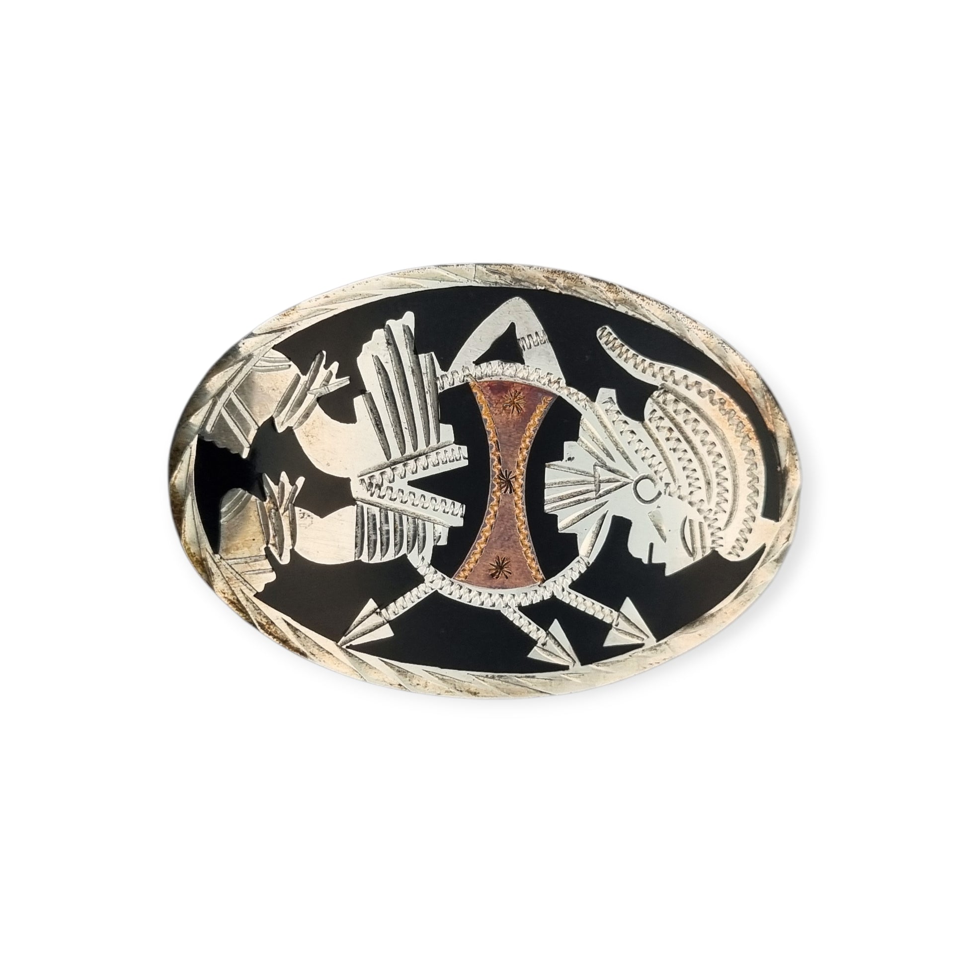 Broche mexicano guerrero azteca en plata 925, Los Castillo circa 1970