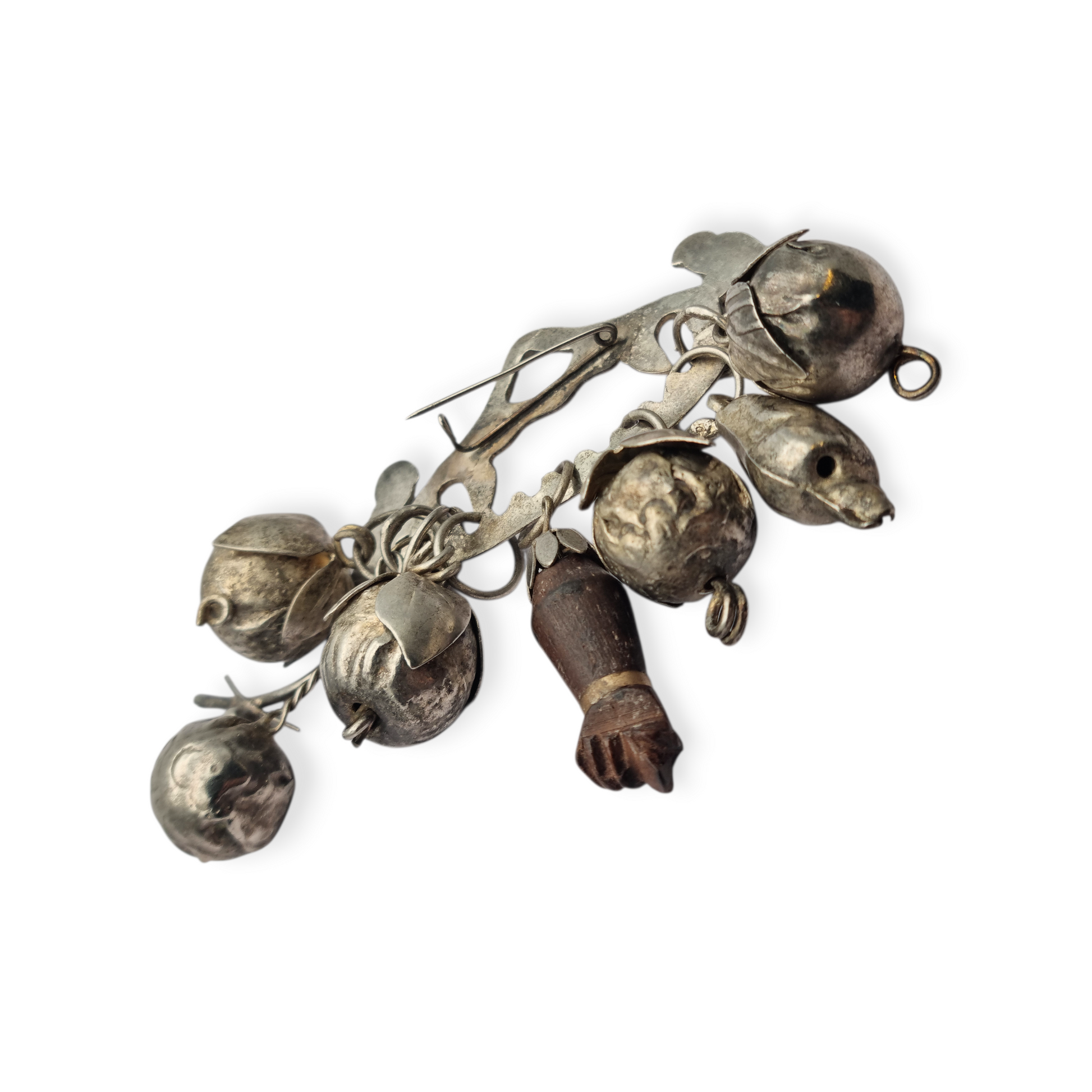Penca Brasileña de Balangandán Ragastens en plata 900, broche amuleto 1950.
