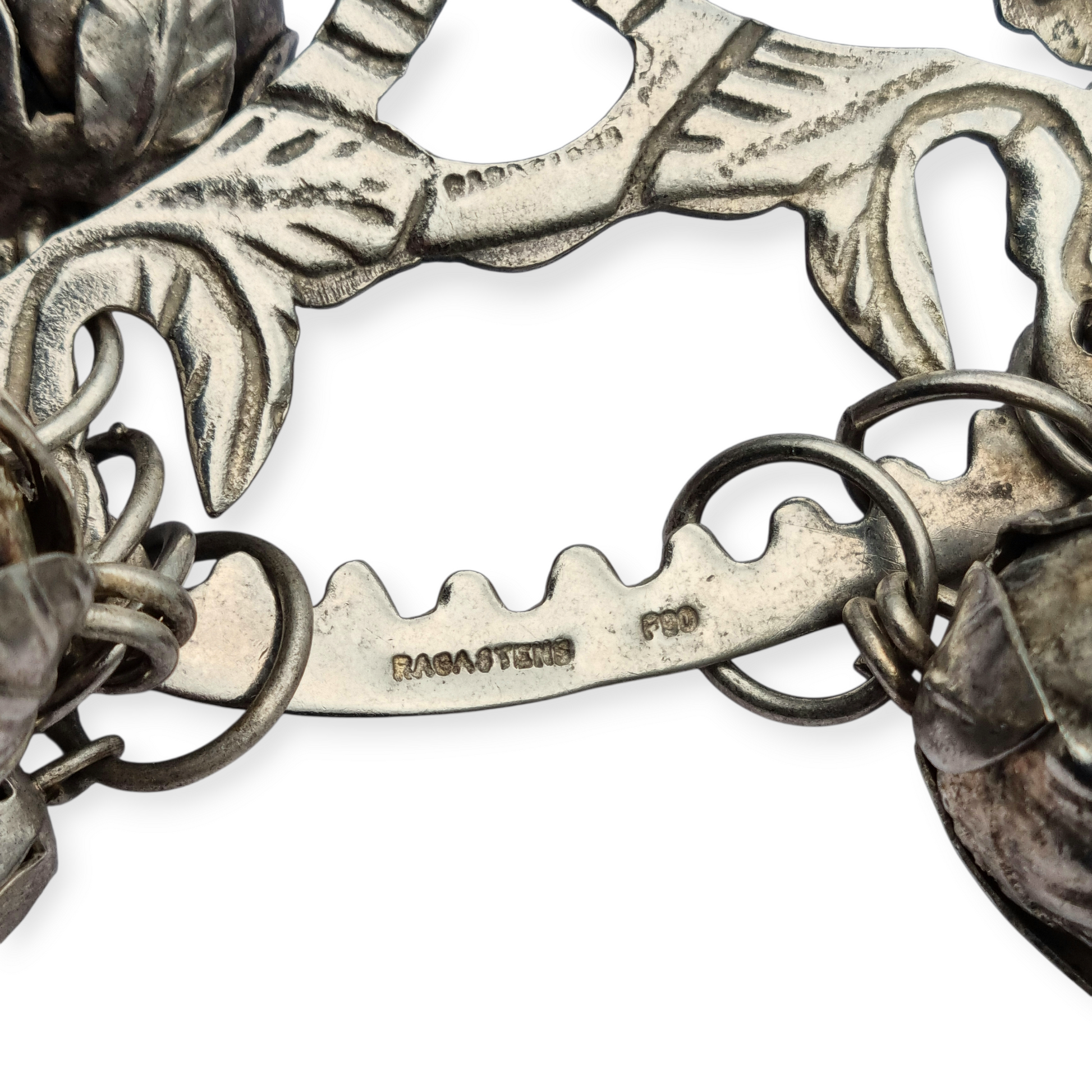 Firmada “RAGASTENS” y “P10”. Pieza vinculada a la tradición afrobrasileña de Bahía, utilizada como adorno identitario, amuleto espiritual y reserva de valor. Ejemplo representativo de joyería etnográfica brasileña en plata 900.
